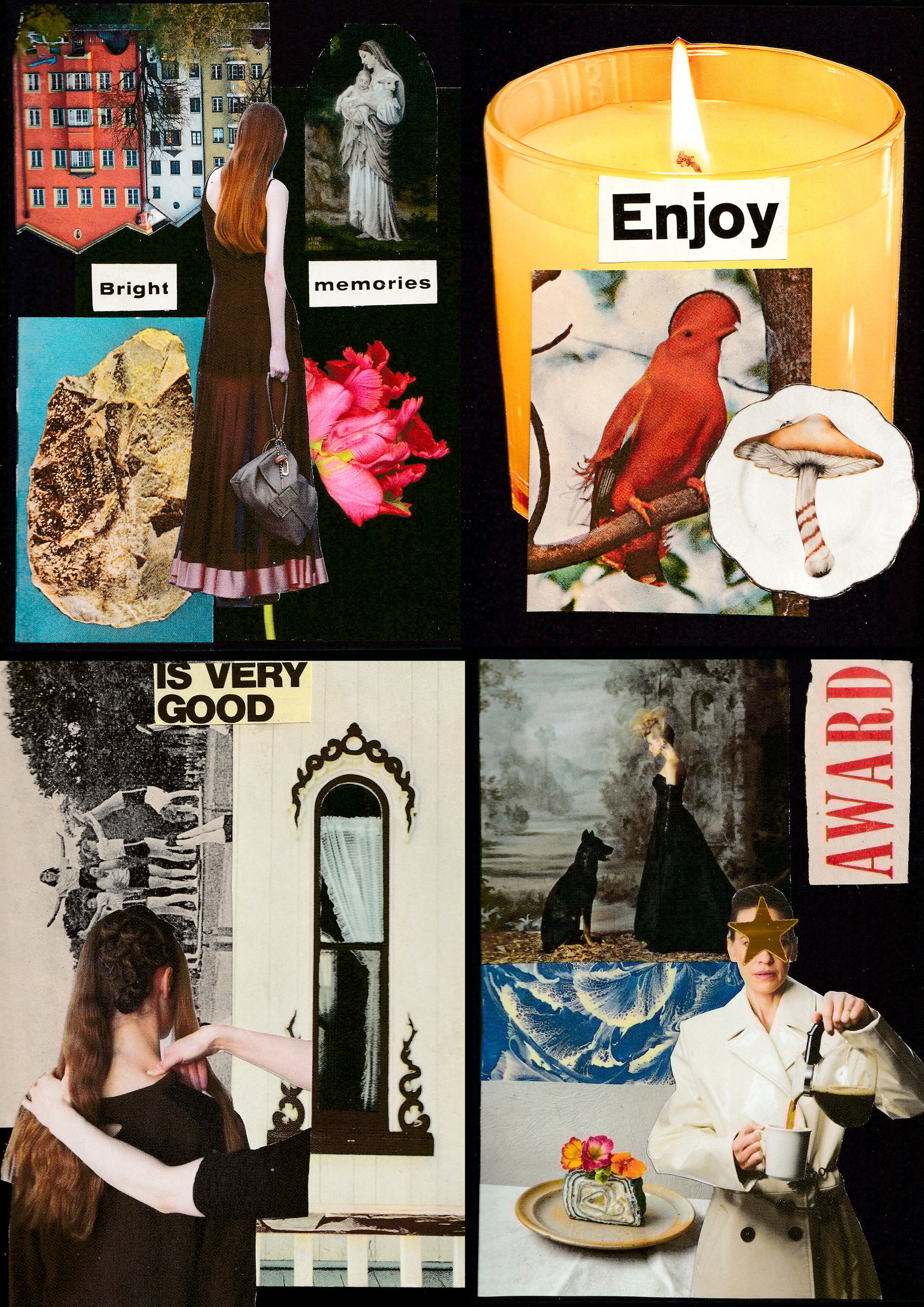 - 4 high quality printed collage design greeting cards